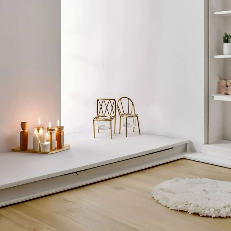 Add a whimsical touch to your decor with the Chair Tea Light Candle Stand Set of 2. These unique candle holders feature a playful chair design, bringing a cozy and charming atmosphere to any space. Perfect for adding a hint of creativity to your lighting.