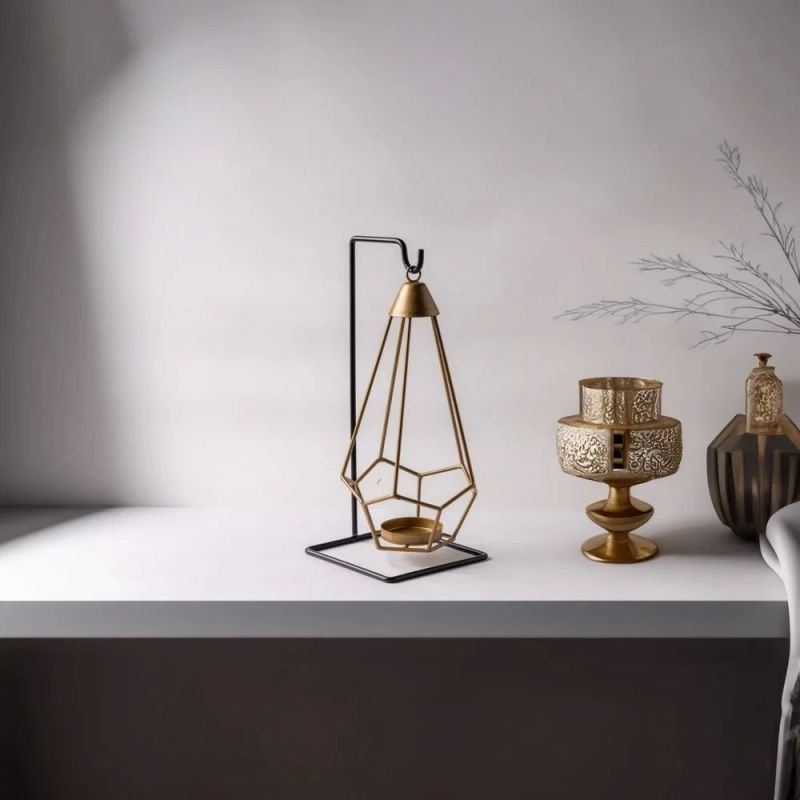 Elevate your home decor with the Geometric Hanging Candle Holder, featuring a sleek metal frame and a contemporary design. This modern piece adds a stylish touch to any room, casting captivating shadows and creating a warm, inviting ambiance. Perfect for contemporary interiors, elegant gatherings, or creating a chic focal point in your space, it combines both form and function to enhance your decor.